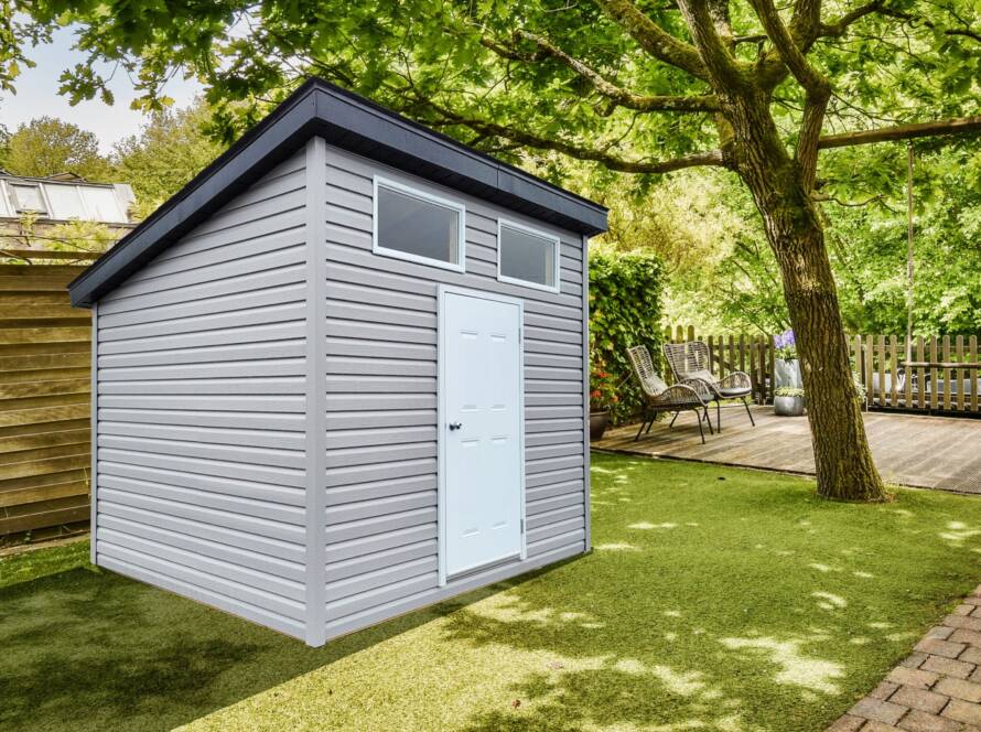 DimensionsDisponible de 6’x8 ’ à 12’x16’FenêtresFenêtres style contemporain (simple ou double)PortePorte 36 pouces – finition noire (option)DesignStyle moderne avec lignes épurées