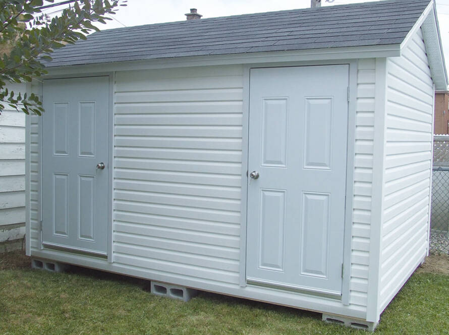 DimensionsDisponible de 8'x8' à 12'x16'Portes2 portes en acier robustes pour accès élargiInstallationInstallation minutieuse de votre cabanon, avec un service impeccable et un nettoyage complet après l’installation.