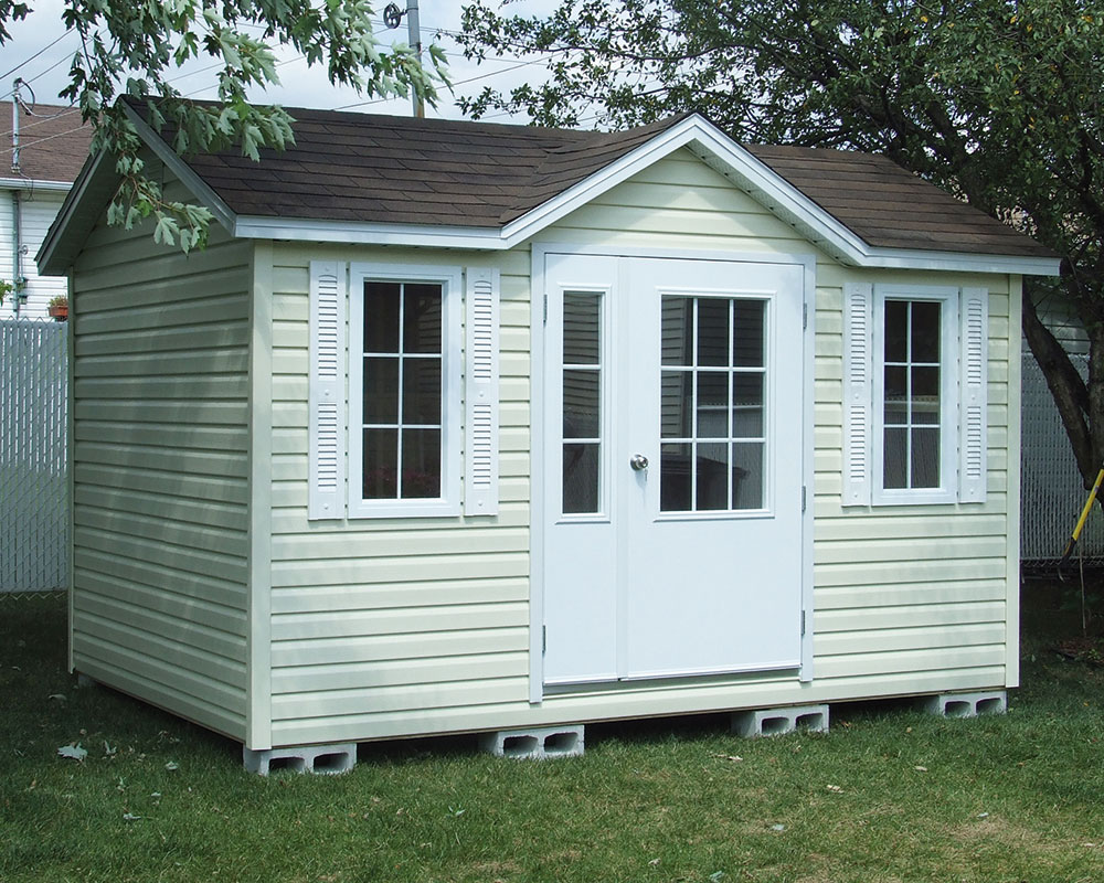 DimensionsDisponible de 8 x 10’ à 12 x 16’PignonPignon configurable : à droite, à gauche ou centréFenêtres2 fenêtres PVC blanc 16” x 36” (selon configuration)PortePorte en acier durableInstallationInstallation minutieuse de votre cabanon, avec un service impeccable et un nettoyage complet après l’installation.Share