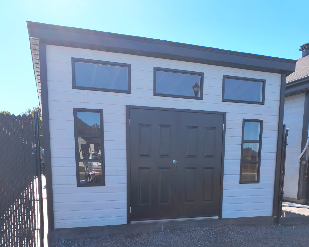 DimensionsDisponible de 6’ x 8 ’ à 10’ x 16 ’Toitmono penteFenêtres2 fenêtres fixes 16x36PortesPorte blanche en acierInstallationInstallation minutieuse de votre cabanon, avec un service impeccable et un nettoyage complet après l’installation.Share